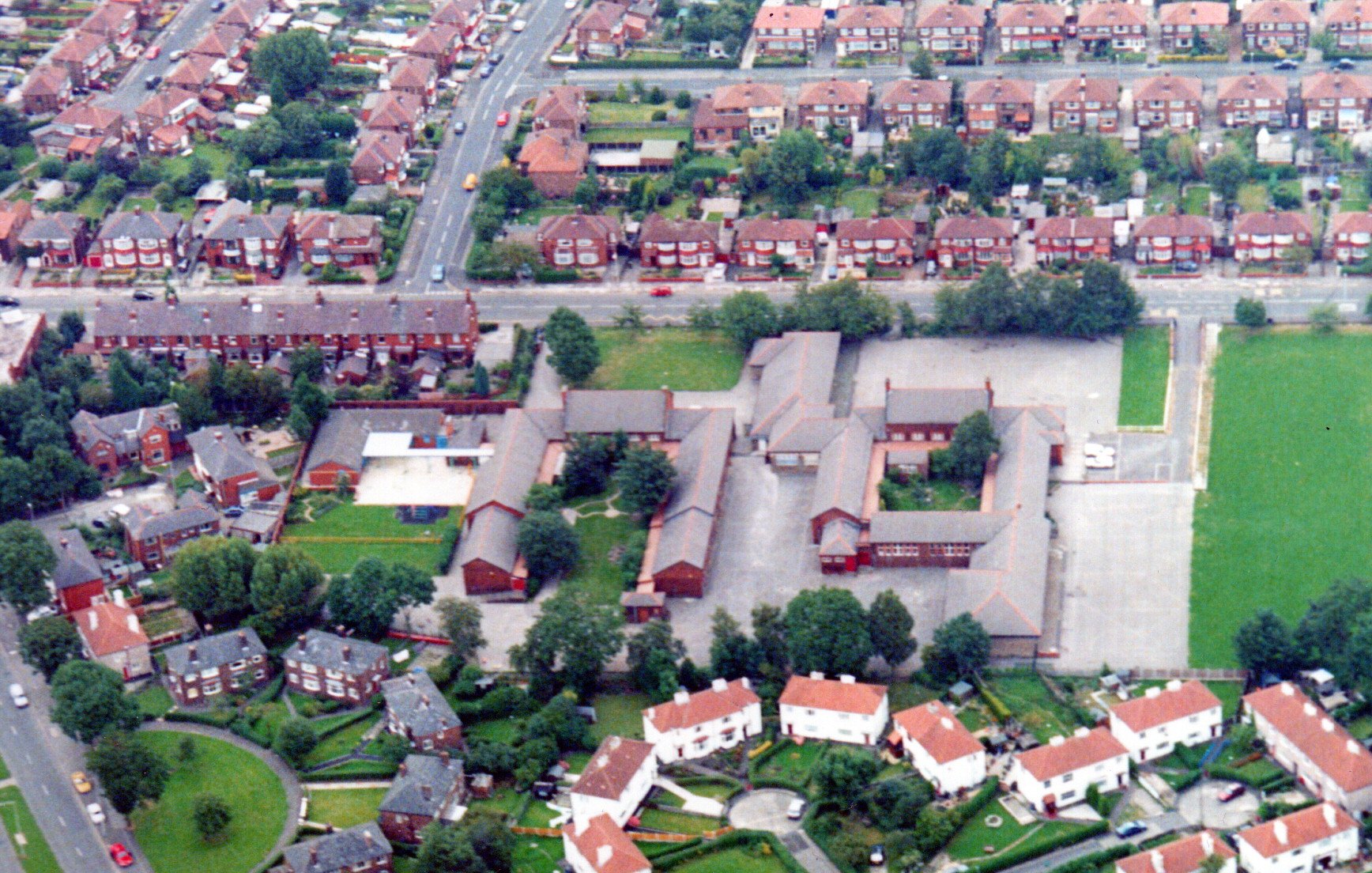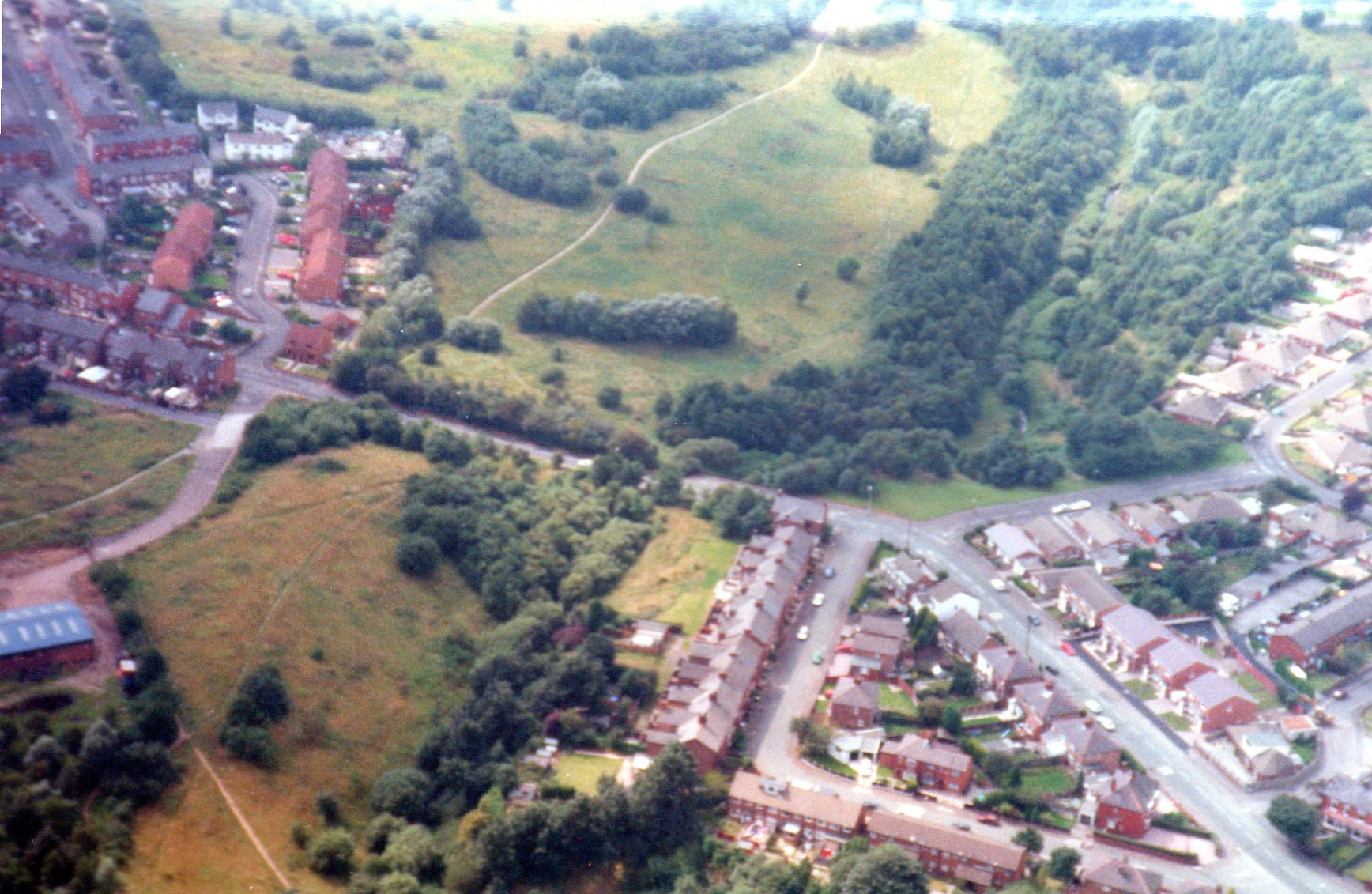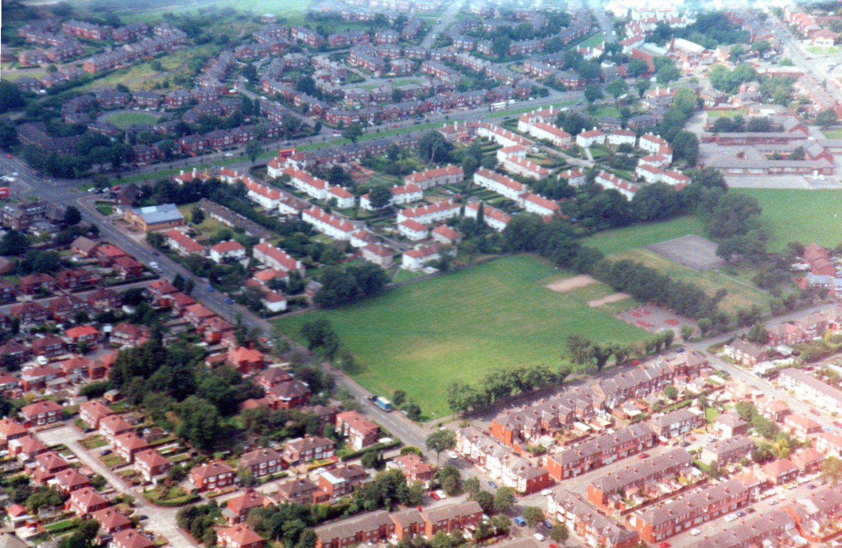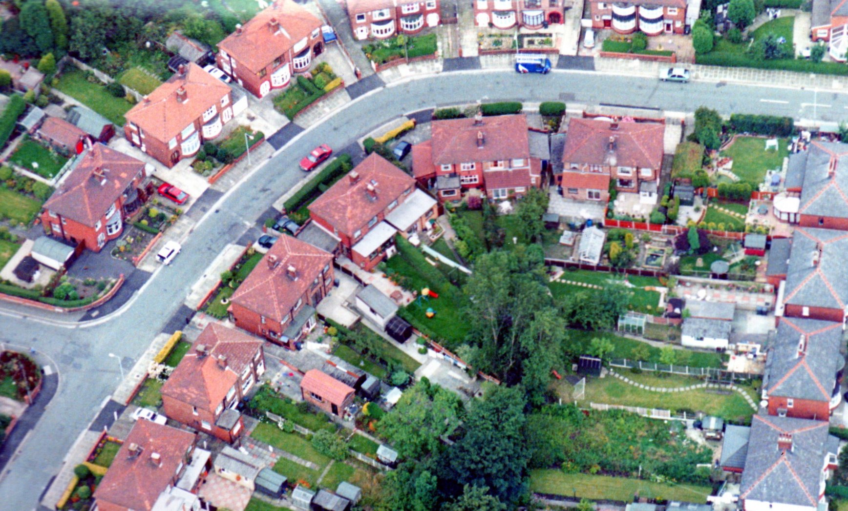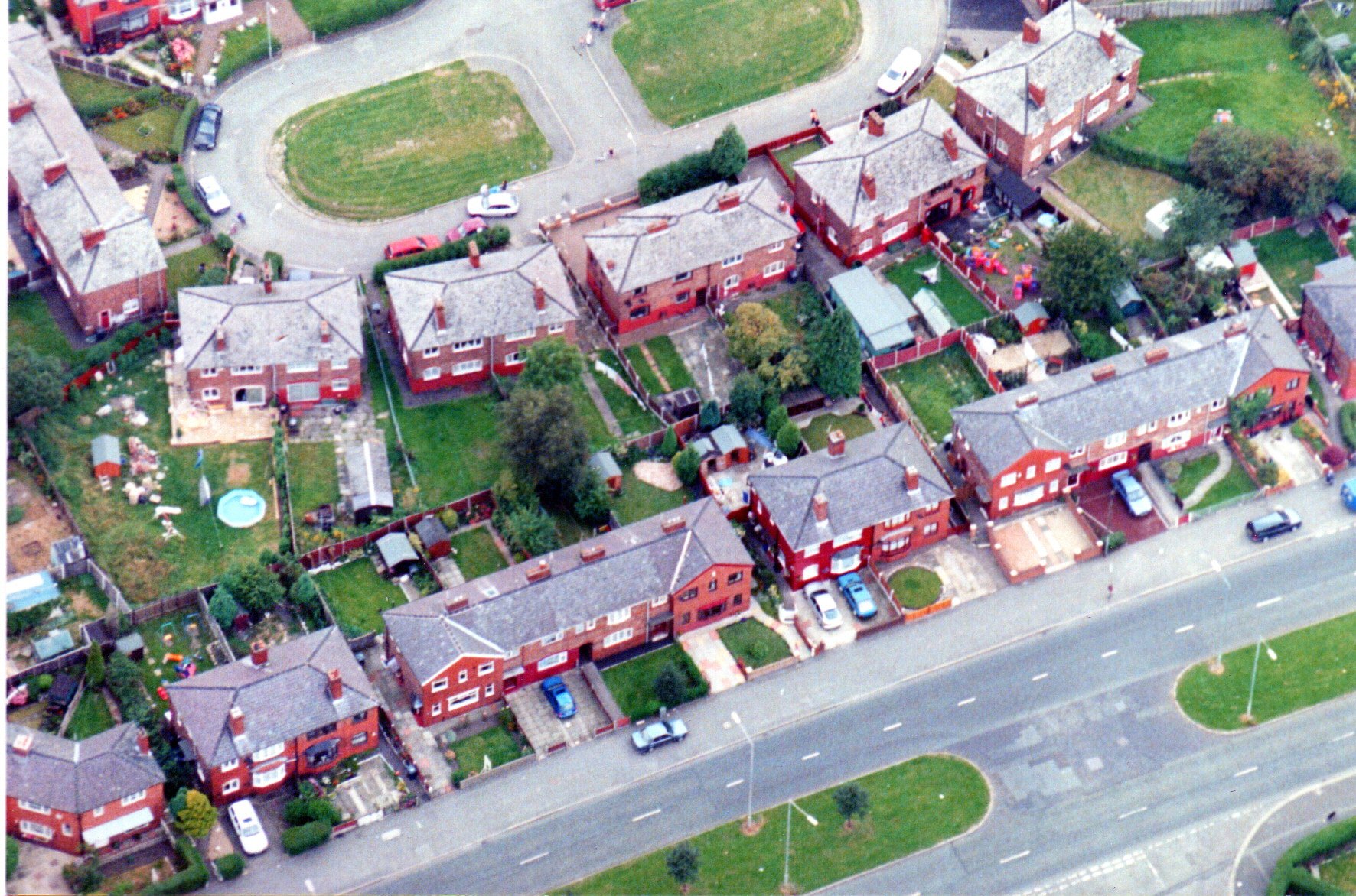 These aerial shots were taken in the late 1990’s and cover most of New Moston. See the caption below each image for more information.