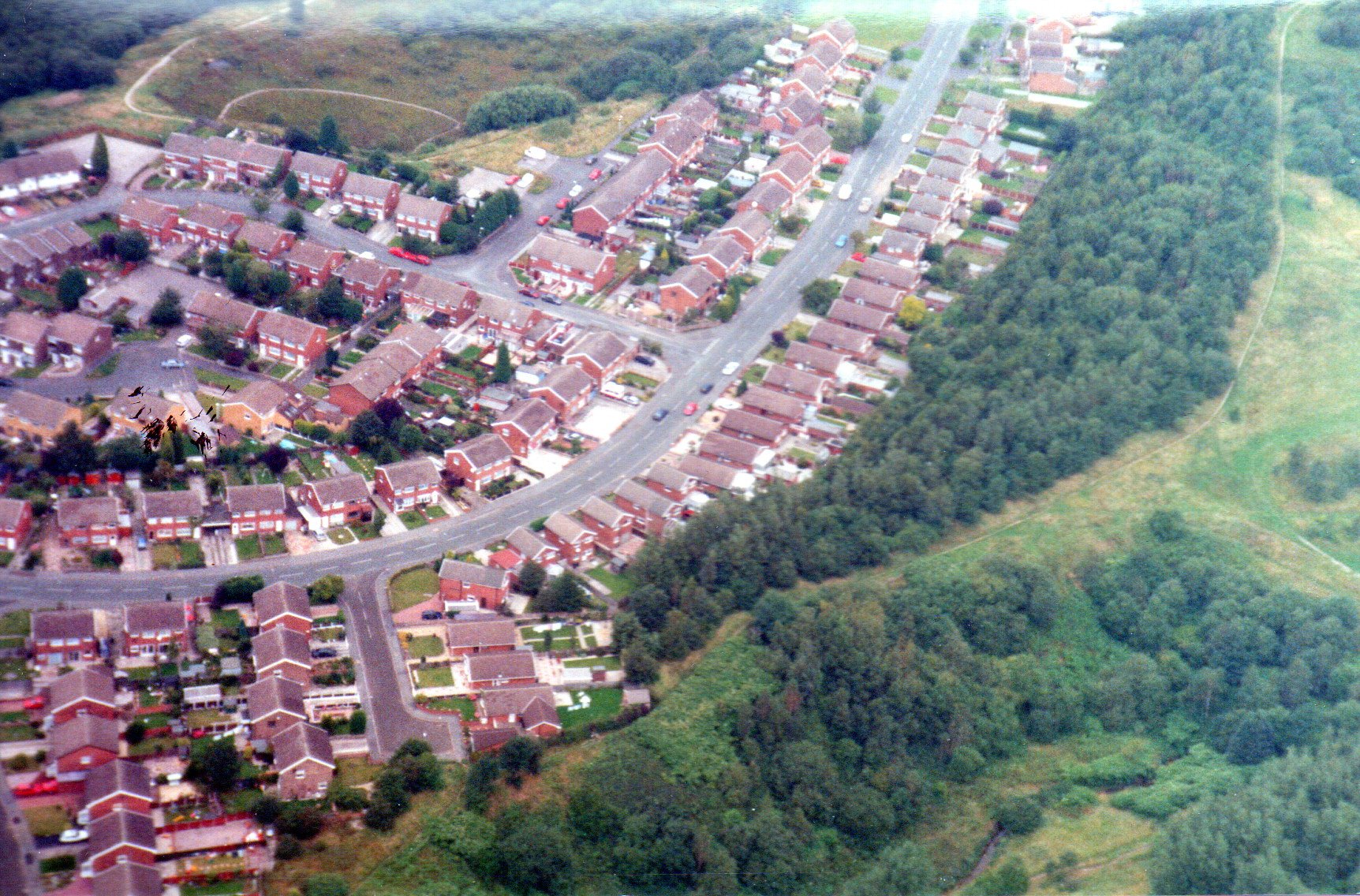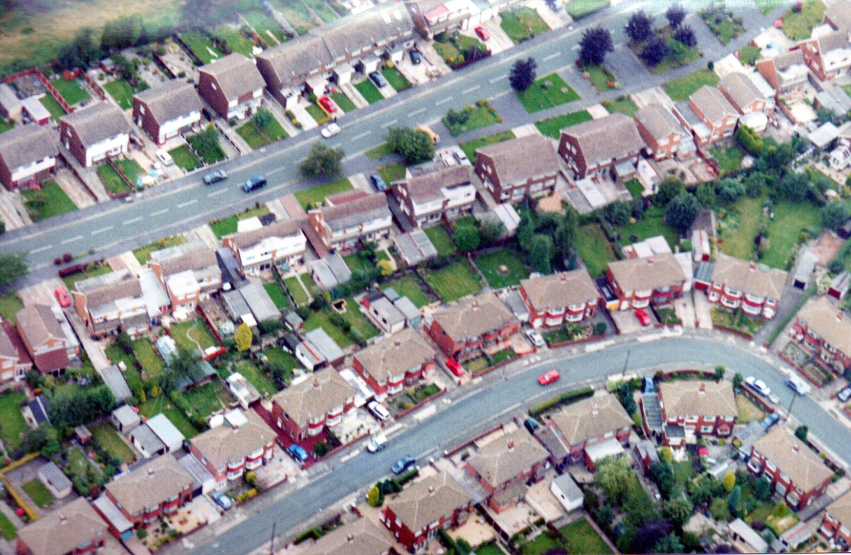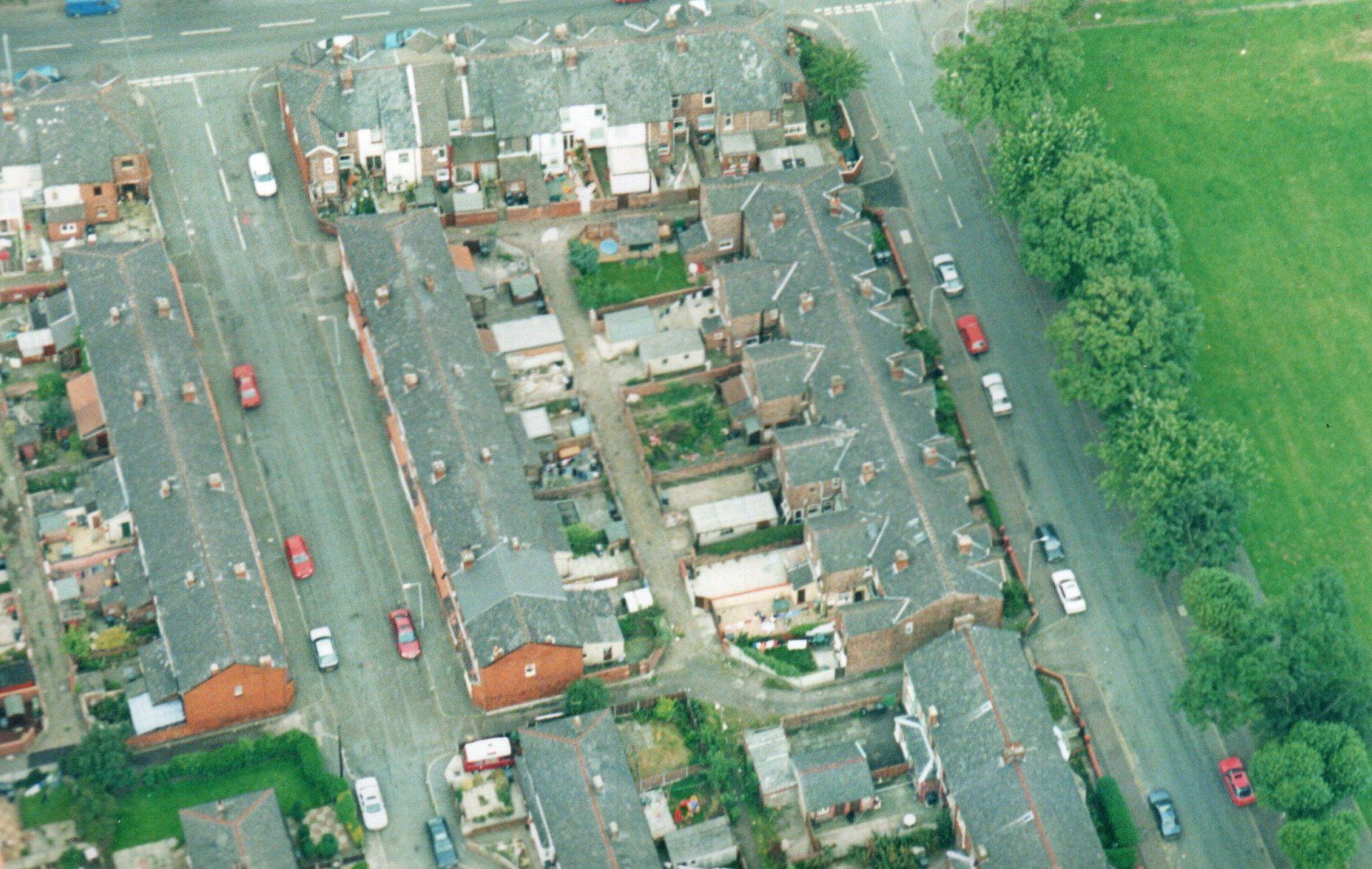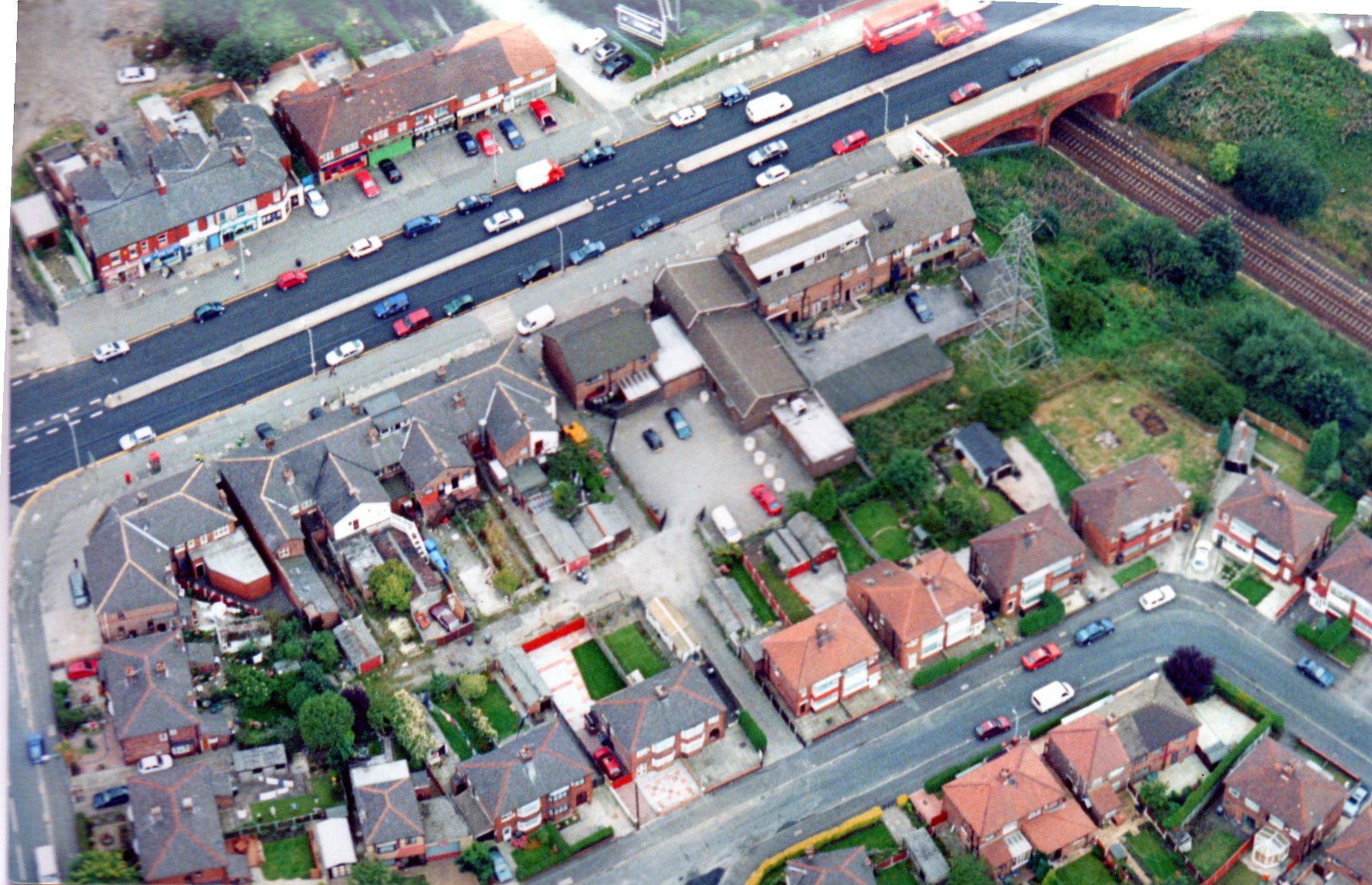 These aerial shots were taken in the late 1990’s and cover most of New Moston. See the caption below each image for more information.